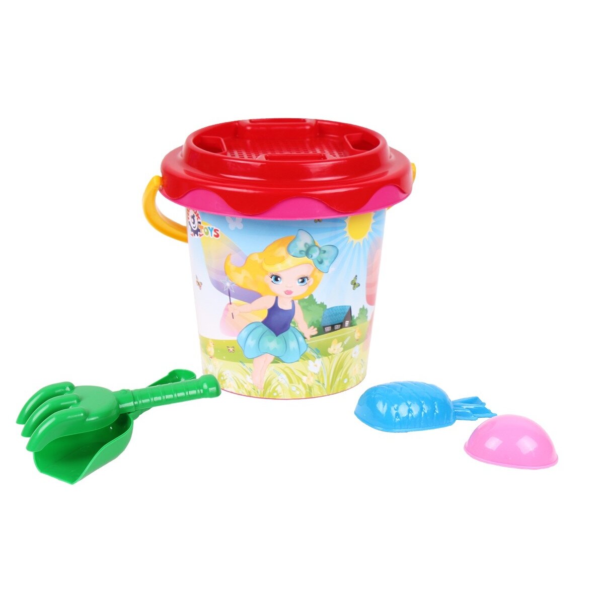 Smėlio rinkinys su kibirėliu, kastuvėliu, grėbliuku ir 2 formomis smėliui.