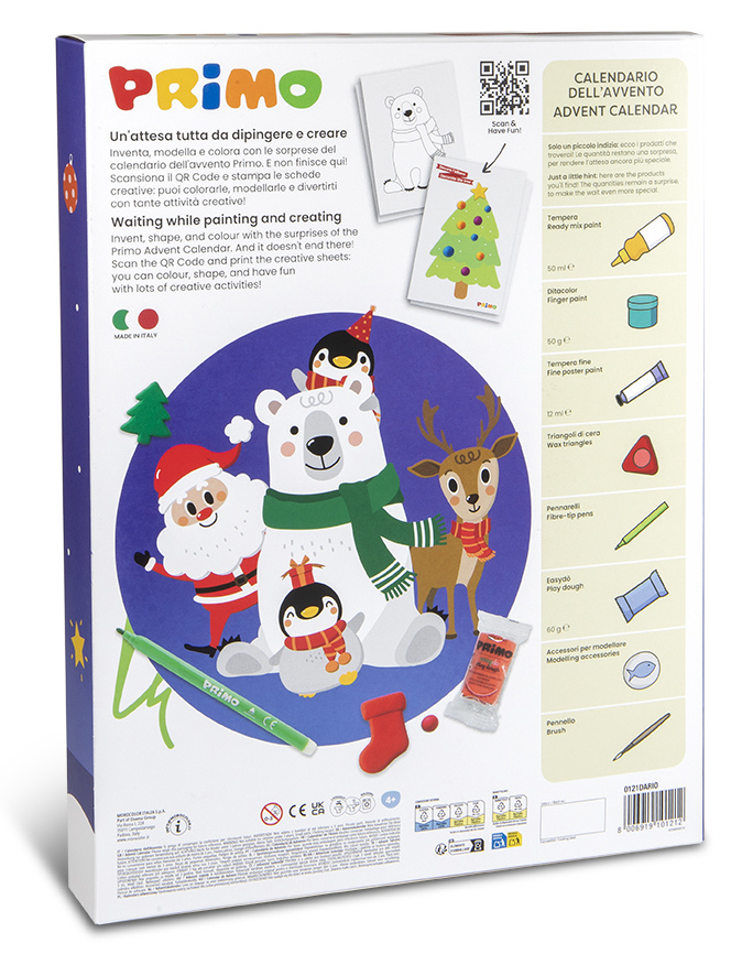 PRIMO didžiuojasi savo dažų, akvarelių, vaško kreidelių, kreidos, klijų ir modeliavimo masės gamyba, kuri vykdoma Italijos gamykloje Campodarsego mieste, kur kiekvienas prisideda prie gaminių sėkmės. PRIMO stengiasi užtikrinti kainos ir kokybės santykį, derina naujas technologijas ir turimą patirtį, naudoja saugias žaliavas, visiškai kontroliuoja produktų gamybos procesus. Atidžiai tikrina medžiagas, kurias importuoja iš užsienio, įsitikindami, kad jos visada ir visiškai atitinka įmonės standartus. Vidinė tyrimų laboratorija nuolat eksperimentuoja ir kuria naujoves.