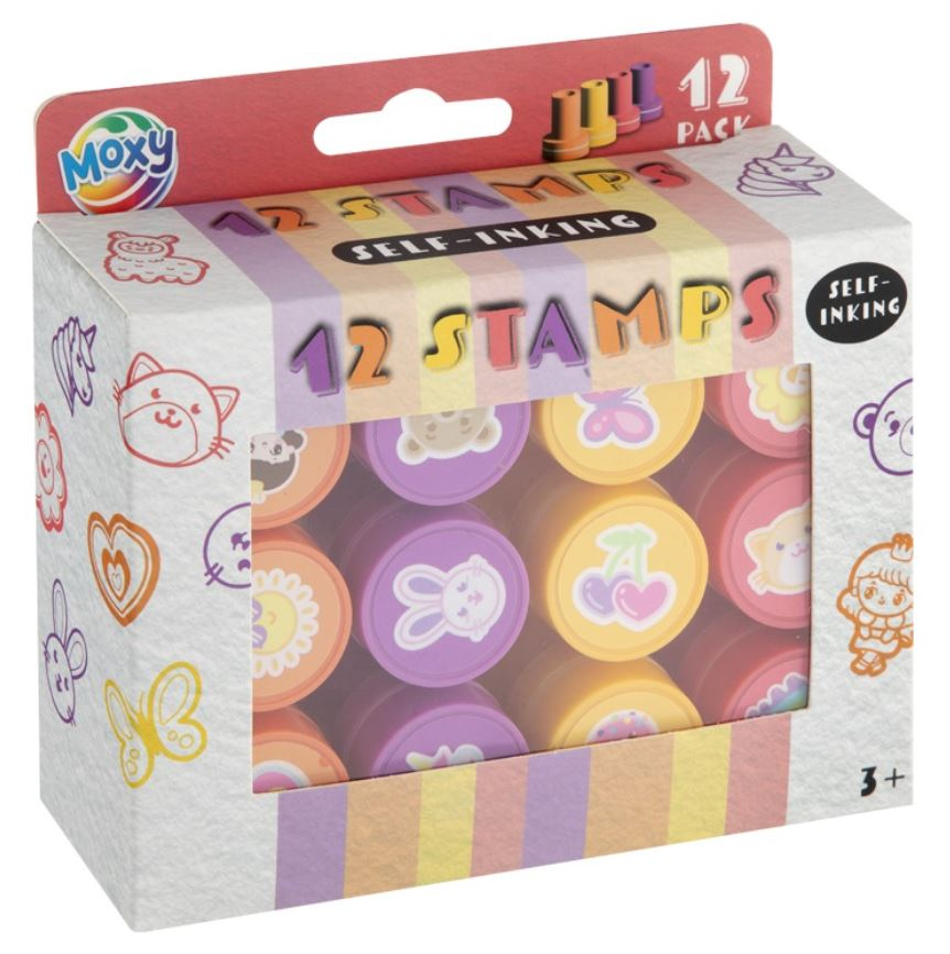 Savaime sudrėkinami antspaudukai MOXY, raudona, 12 vnt.