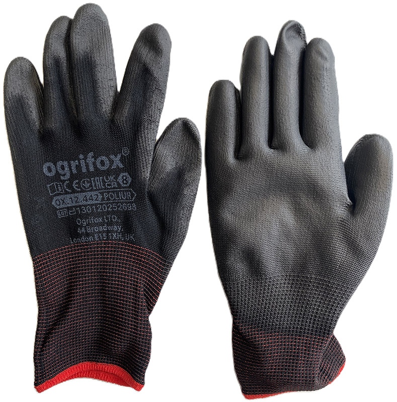 Nailoninės pirštinės aplietos poliuretanu, L dydis