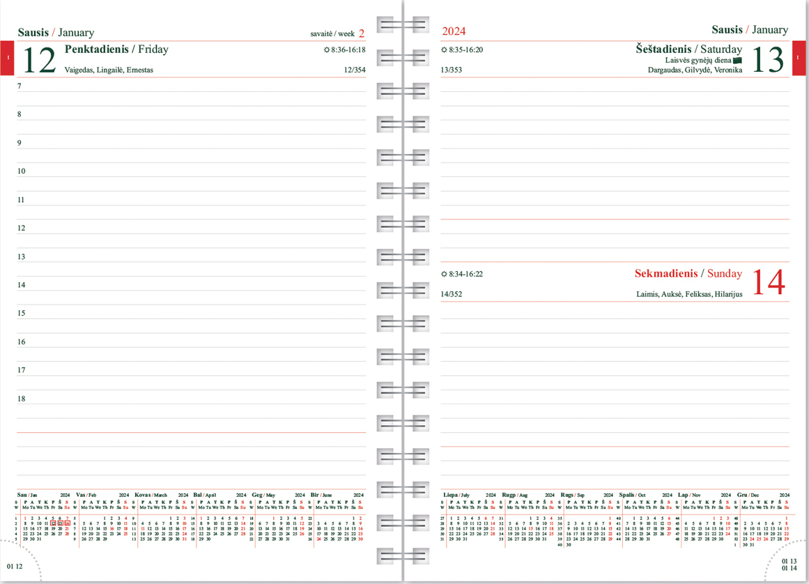 Kalendorius MANAGER Spirex Day 2026, A5, PU FLEX, koralų raudona sp.