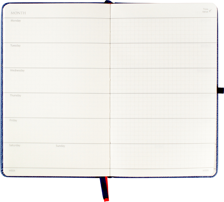 • Puslapių skaičius: 256 puslapiai langeliais su galimybę žymėti datas (visoms metų darbo dienoms), universali 12 mėnesių lentelė