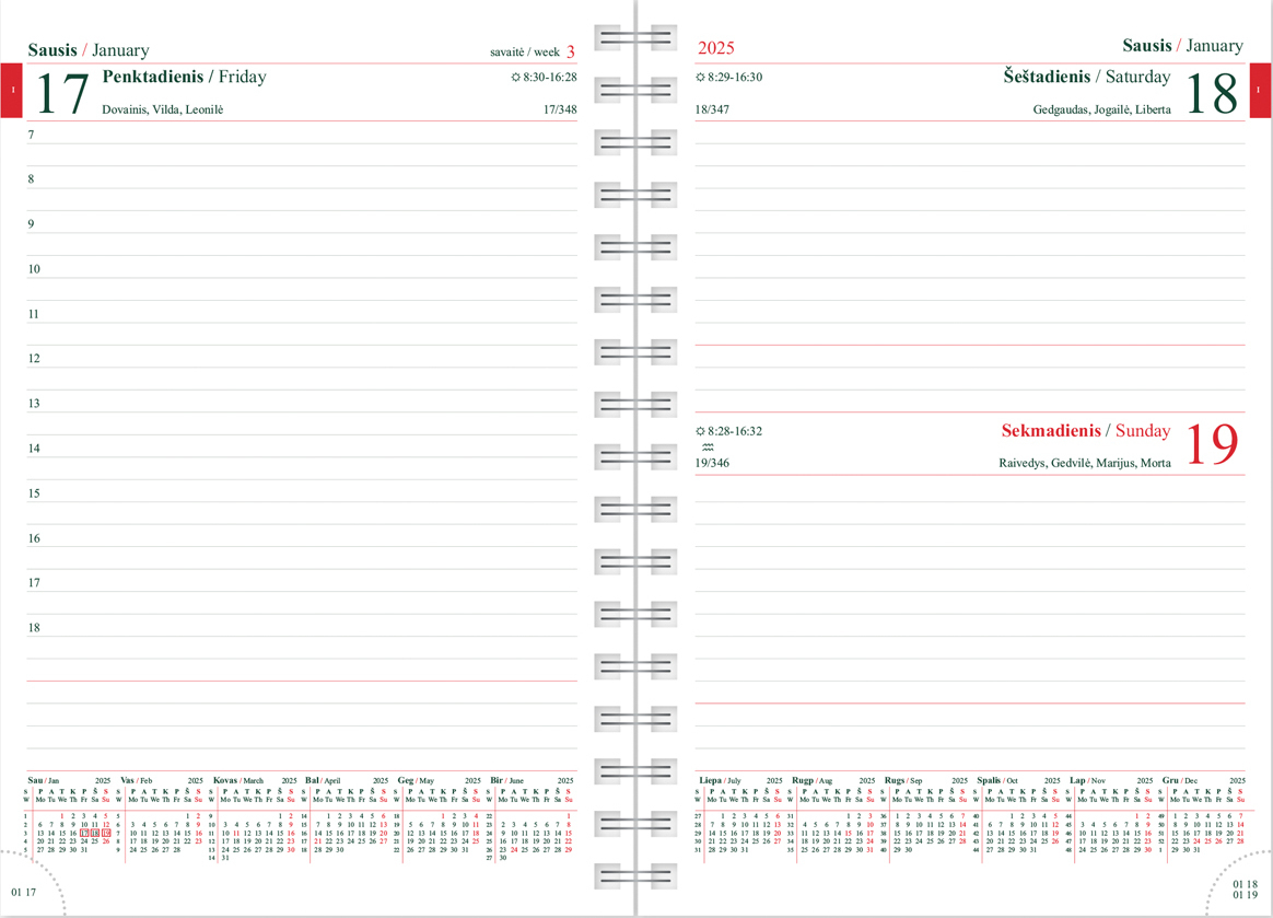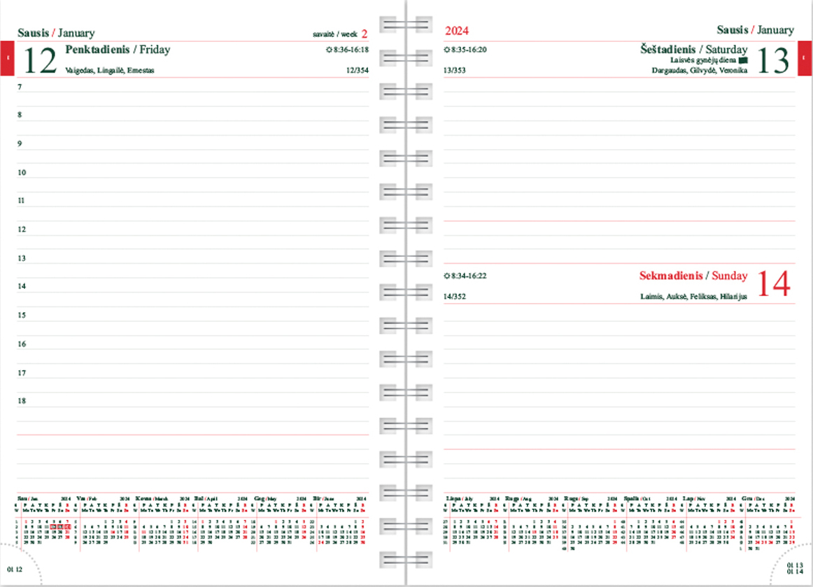 Kalendorius MANAGER Spirex Day 2026, A5, PU FLEX, šviesiai pilkos sp.