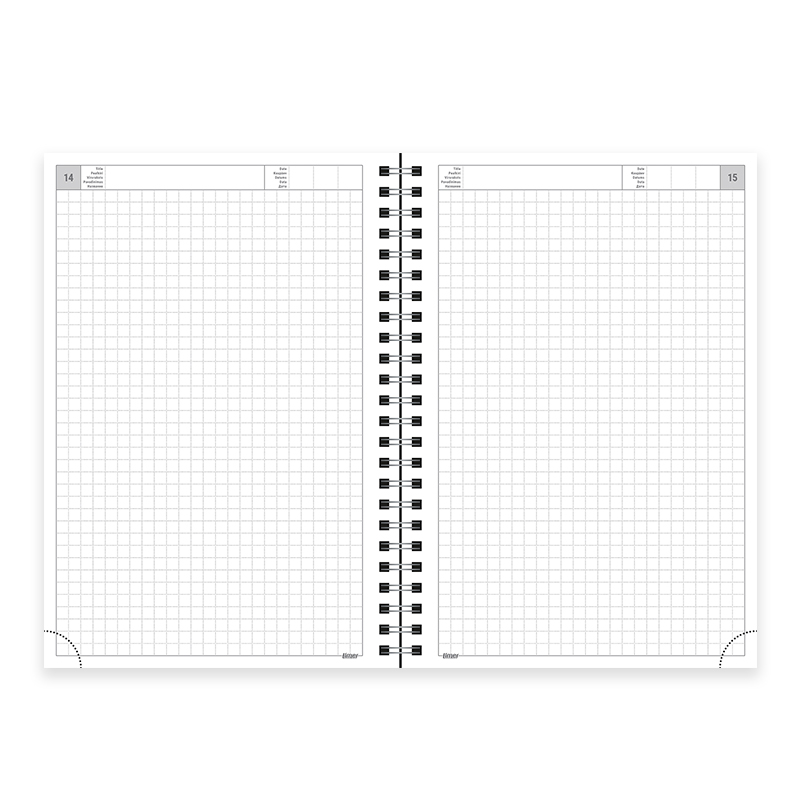 Kalendorius - užrašinė TIMER, su spirale, be datų, 140 x 184 mm, 224 lapai, langeliais, kartoniniu viršeliu, juoda sp.