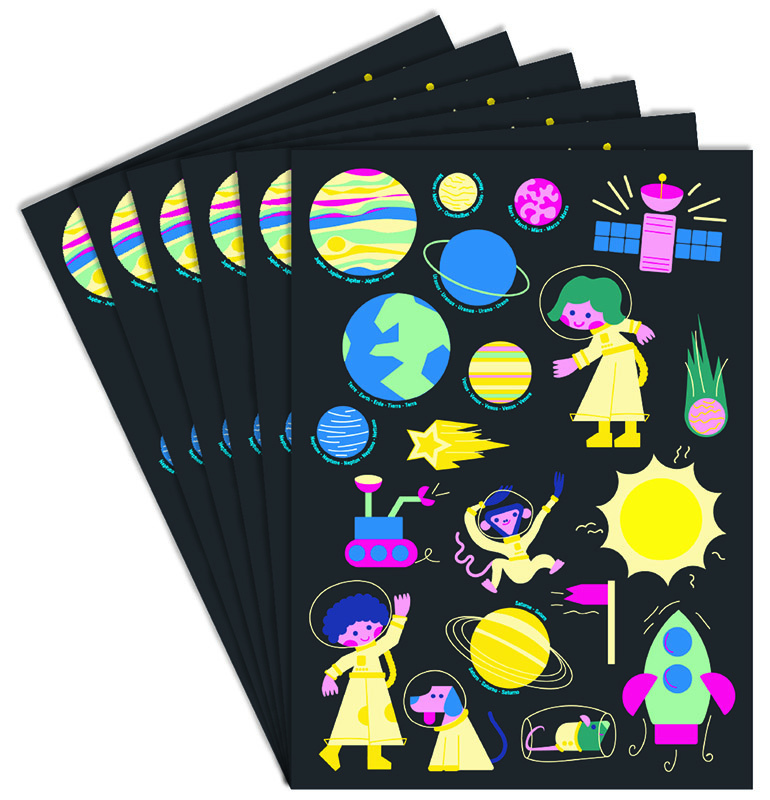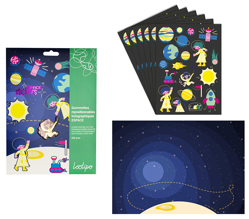 Holograminiai perkeliami lipdukai LOOLIPO Kosmosas, 120 vnt.