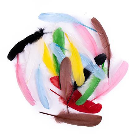 Įvairių spalvų ilgos plunksnos puikiai papildo vaikų kūrybinius projektus ir net tik.