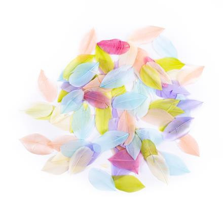 Dekoratyvinės žąsų plunksnos, 6 cm, 5 g, pastelinės spalvos