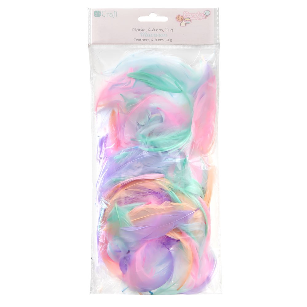 Minkštos, aukštos kokybės plunksnos pastelinių macaron atspalvių.