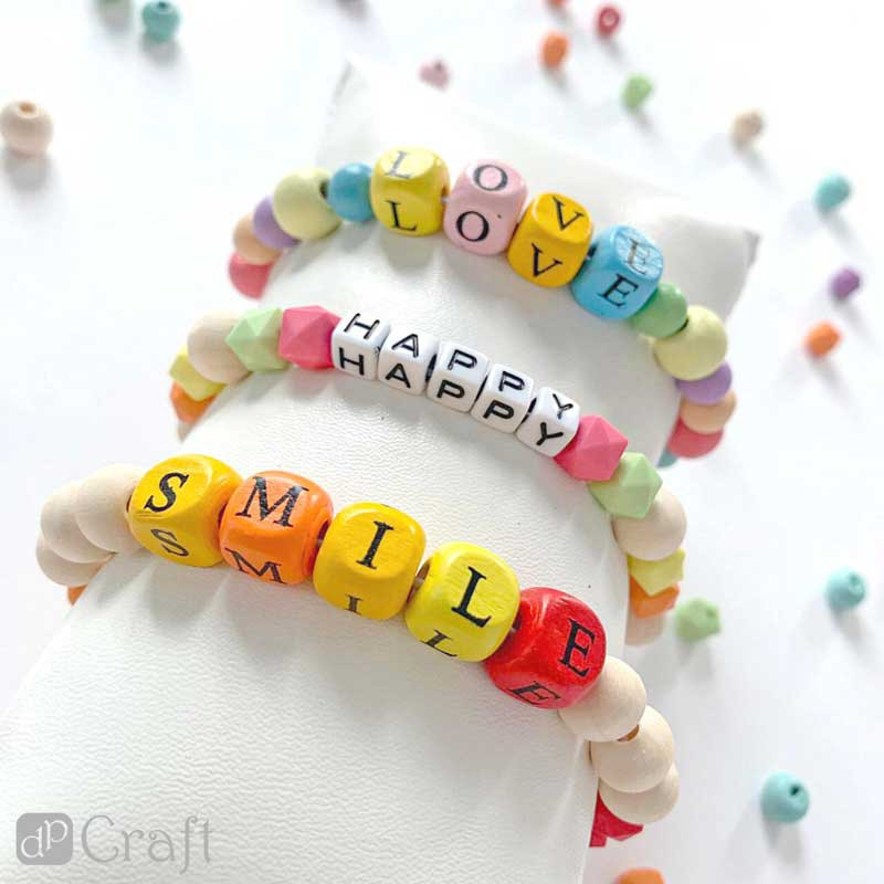 Mediniai, spalvingi karoliukai su juodomis raidėmis puikiai papildys įvairius kūrybinius darbus, iškarpų kūrimą ir kortelių kūrimą.