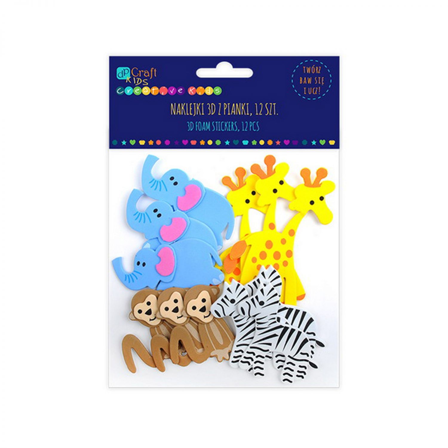 Lipdukai 3D iš putų Safari Žvėrys, 12 vnt.