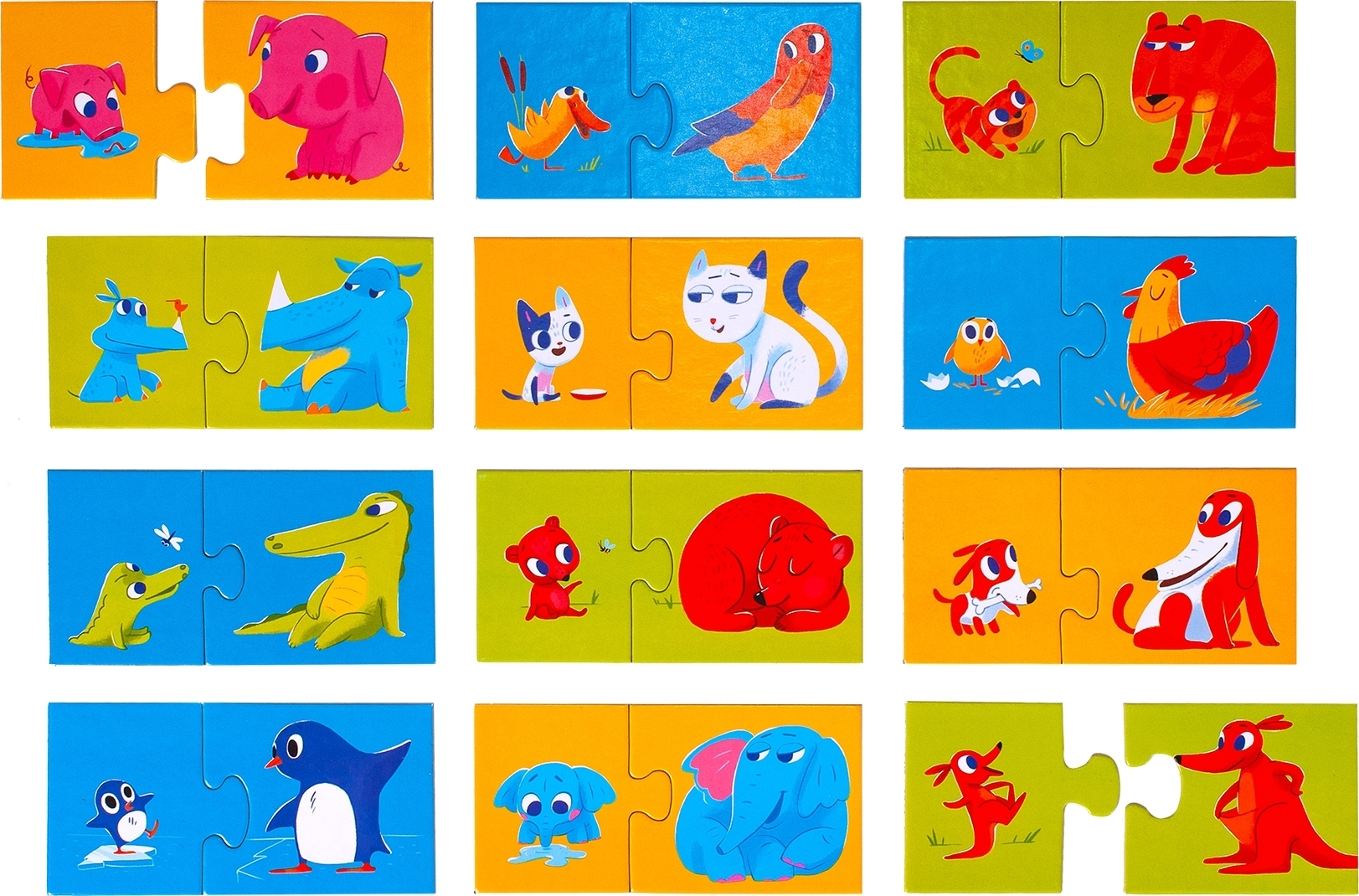 Stalo žaidimas dėlionė mažiausiems Mama ir jos mažylis skirta vaikams nuo 2 metų. Žaidimo detalės pagamintos iš kartono. Žaidimo tikslas sujungti mažylius su jų mama. Rinkinyje 24 detalės.