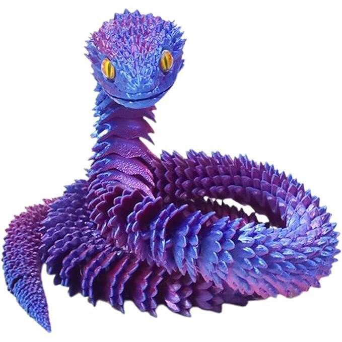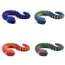 3D spausdinta gyvatė – lankstus ir spalvingas žaislas, pagamintas naudojant segmentuotą konstrukciją, leidžiančią jai judėti tarsi tikrai ropojančiai. Kiekviena dalis sujungta taip, kad gyvatė būtų patvari, tačiau lengvai lankstytųsi į įvairias formas.