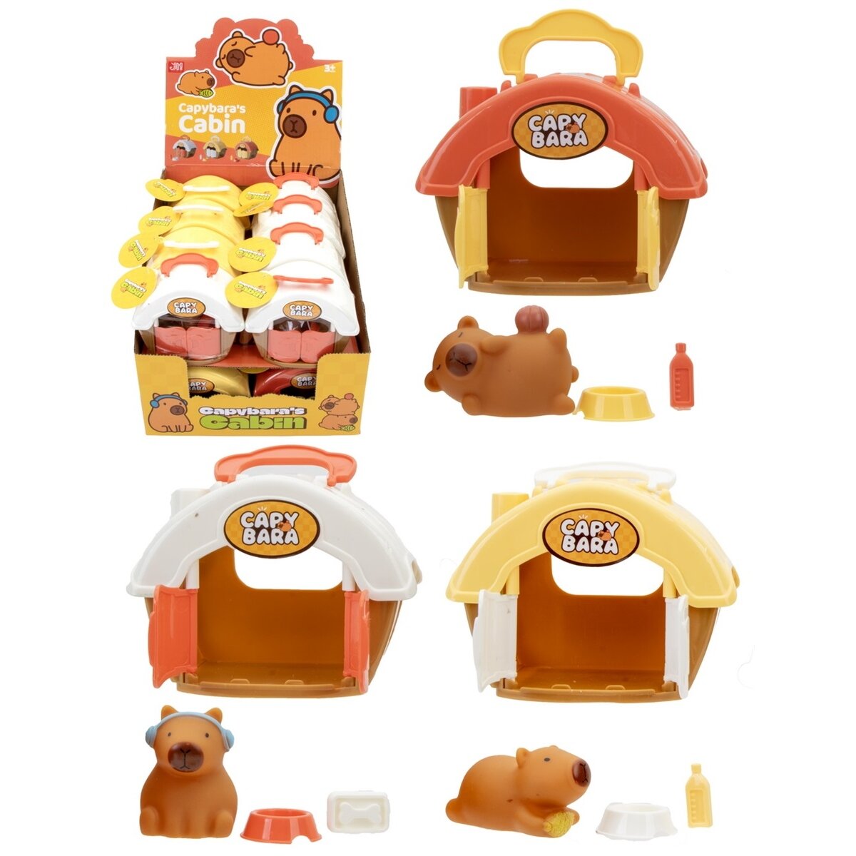 Mielas rinkinys su kapibara ir jos jaukiu nameliu. Atidaromas namelis slepia mažą kapibarą bei kelis priedus, kurie leidžia kurti smagias žaidimų istorijas. Kompaktiškas dydis puikiai tinka žaidimams namuose ar pasiimti su savimi.