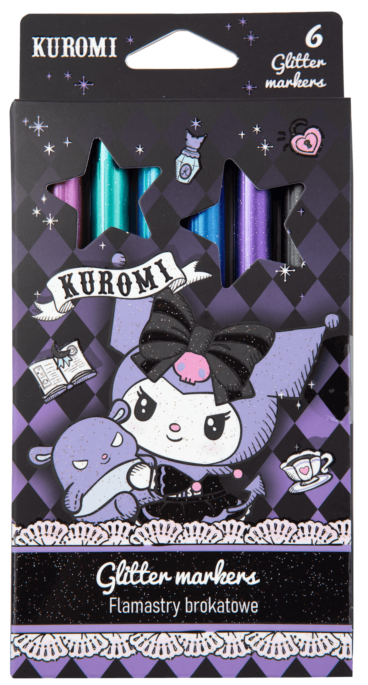 Blizgantys markeriai KUROMI, 6 pastelinių spalvų