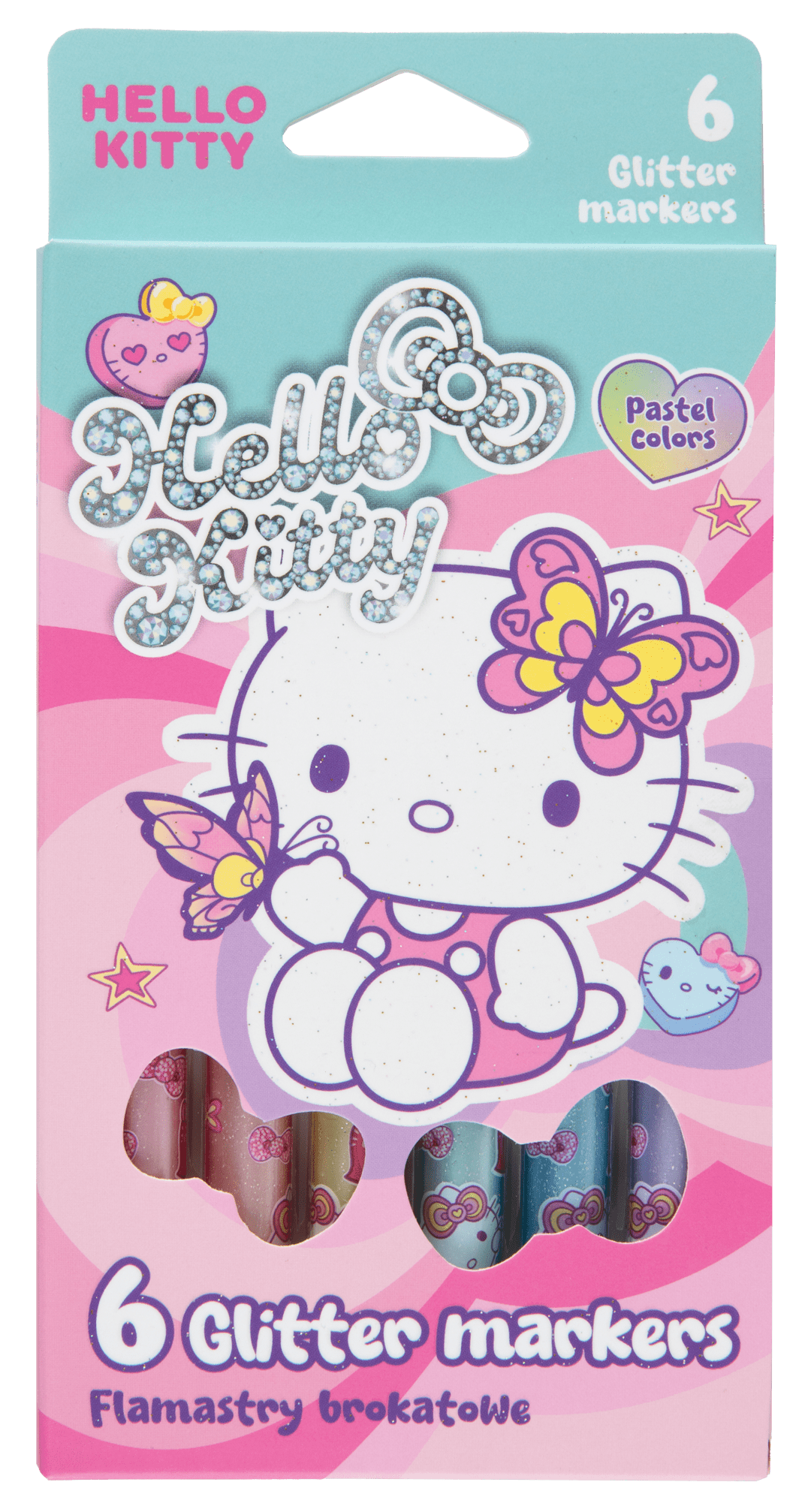 Blizgantys markeriai HELLO KITTY Pastel, 6 pastelinių spalvų