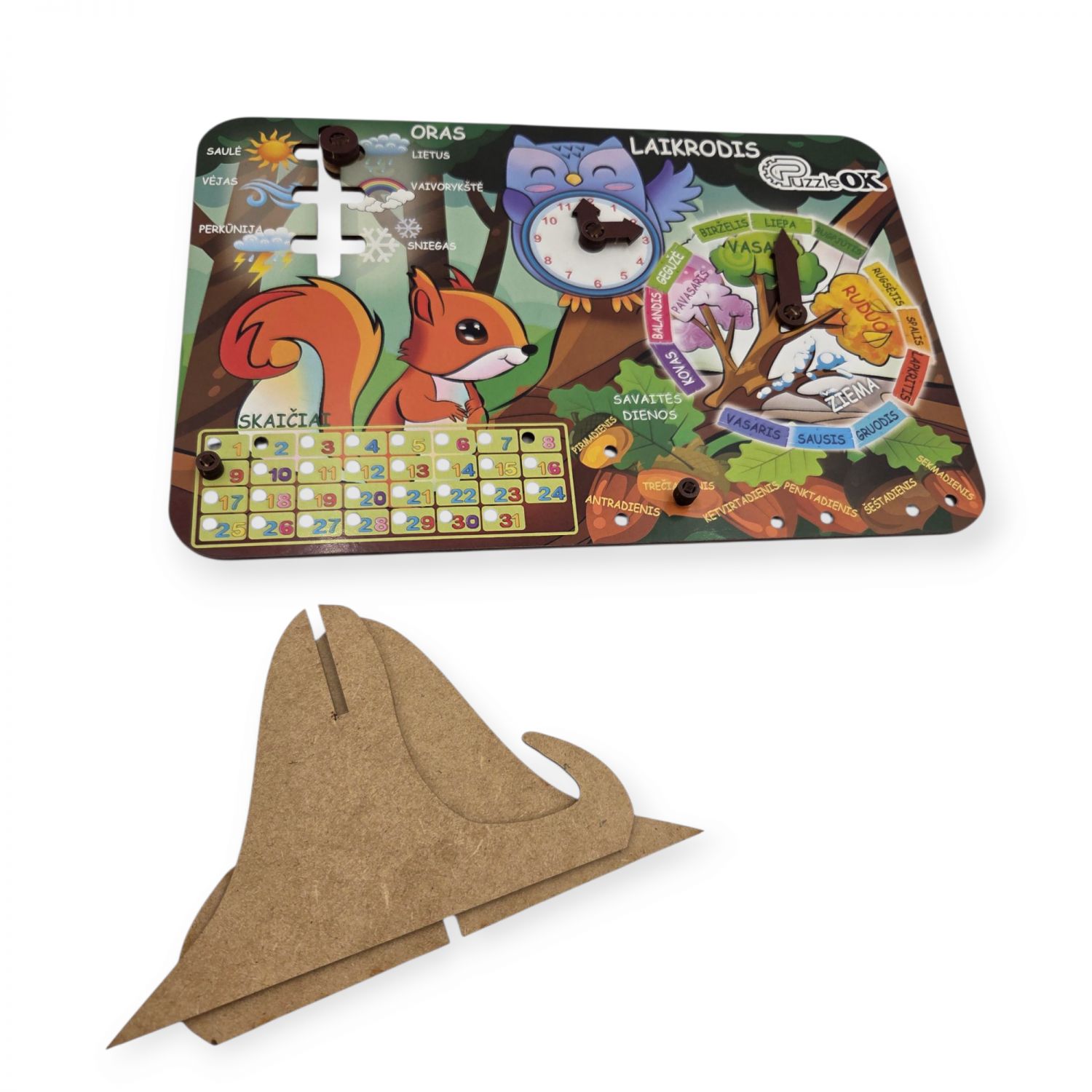 Atraskite metų laikų, mėnesių ir savaitės dienų pasaulį kartu su savo mažyliu! Šis ekologiškų medžiagų pagrindu sukurtas edukacinis kalendorius – tai ne tik žaislas, bet ir išmanus mokymosi įrankis, padedantis vaikams lengvai ir smagiai įgyti pirmųjų žinių apie laiką ir gamtos reiškinius.