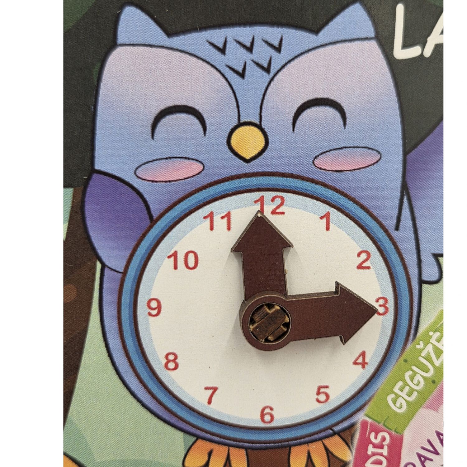 - Laiką – su integruotu laikrodžiu, kuris padės mokytis nustatyti valandas ir minutes