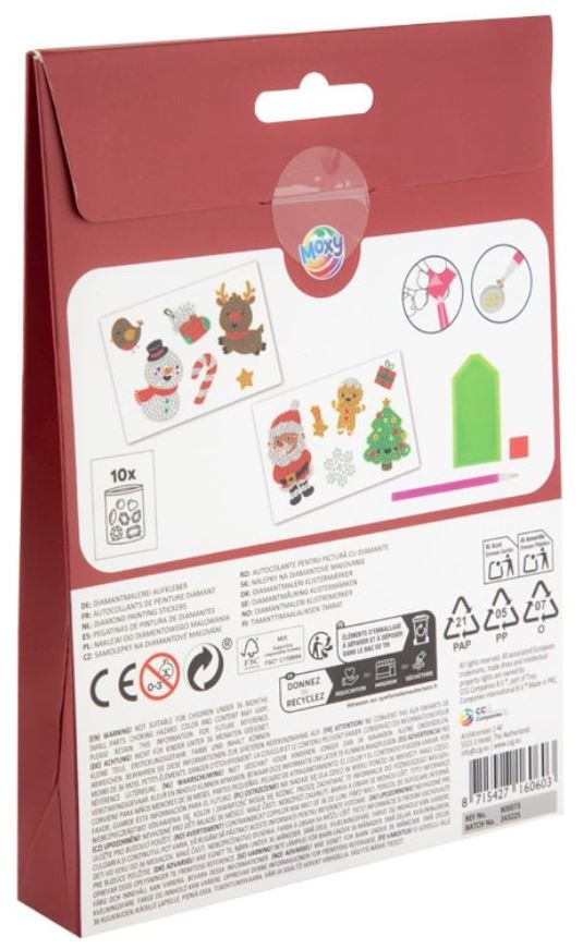 Deimantinė mozaika ant lipdukų MOXY Kalėdos, 12 vnt.