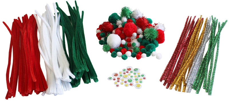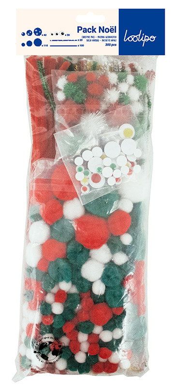 Šenilo vielučių, pomponų ir judančių akyčių rinkinys LOOLIPO Maxi "Kalėdos", 300 vnt.