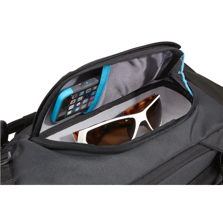 - Superior bumper protection, thanks to SafeEdge construction within laptop compartment, Protective tablet pocket with soft interior lining, Two-way access to laptop and tablet through top-loading compartment or side zipper, Removable SafeZone compartment protects sunglasses, smartphone or other fragile items, Duffel-style zipper opens main compartment wide for easy packing and full visibility, Quick-access front pocket expands to hold large items such as a U-lock or power brick for laptop, Hidden, vertical pocket stores frequently used mid-sized items such as headphones, a hat or gloves, Organization pocket with clip for an access card or keys, Integrated daisy chain attachment system for carabiner or bike light, Interior, zippered mesh pocket keeps small items visible yet secure