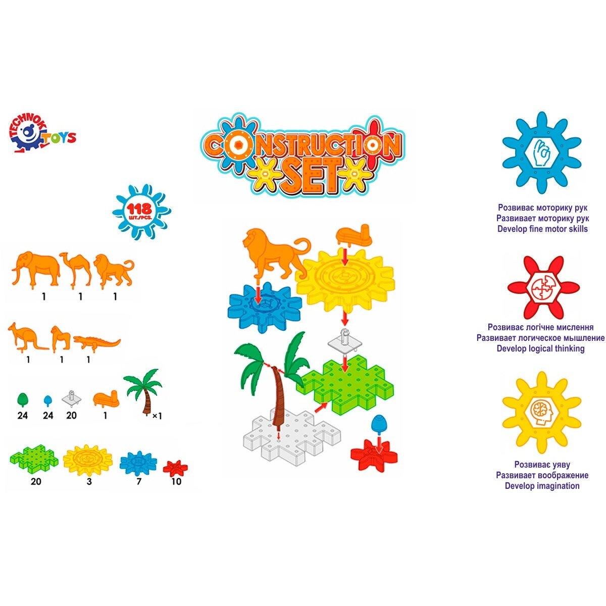 Naujasis „Gears konstruktorius TechnoK“ vaikams suteikia dvigubo džiaugsmo. Jūs paklausite kodėl. Vien todėl, kad daugiau detalių, tai reiškia daugiau galimybių. 118 ryškių ir kokybiškų plastikinių detalių tikrai pavers žaidimą kitokiu! Sujungęs krumpliaračius, galvosūkius, gyvūnų figūrėles, delnus ir kitus elementus, vaikas gaus nuostabią konstrukciją, su kuria bus įdomu žaisti.