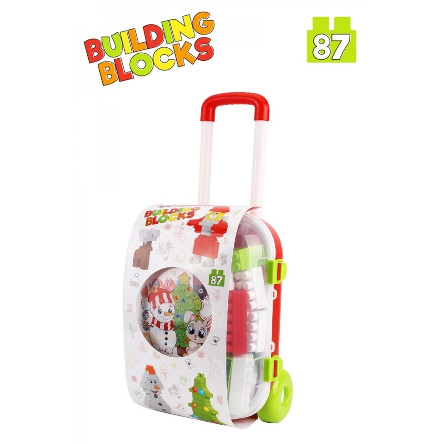 Komplekte: lagaminas su permatomu dangčiu, 87 konstrukciniai elementai, lipdukų rinkinys, instrukcijos.