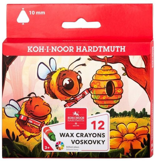 Storos vaškinės kreidelės KOH-I-NOOR Jumbo, tribriaunės, 12 spalvų