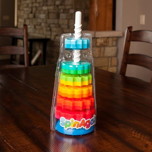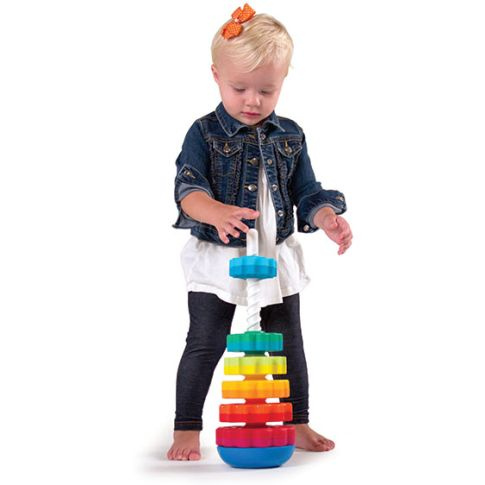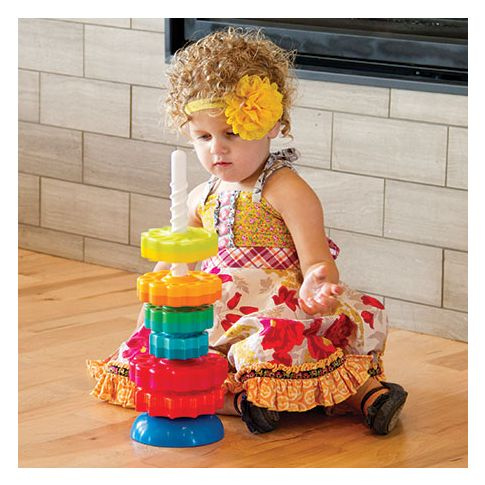 Nuostabus žaislas mūsų mažiesiems! Mažylis gali dėti, sukti ir stebėti, kaip linksmai besisukdami, žiedeliai keliauja žemyn. O viską sudėjus, pabandyk nuimti - ir vėl laukia linksmas sukimas, tik šį kartą į kitą pusę!Žaislas gali būti stabilus, pagrindą naudojant lygiuoju paviršiumi arba, pagrindą apvertus, smagiai siūbuojantis, Linksmi, lengvai besisukantys, spalvingi žiedeliai vilios mažylį, o skirtingi žiedų krašteliai padės mažiems pirštukams vis mikliau ir mikliau žiedelius sukinėti. Šis žaislas atneš į Jūsų namus tikras linksmybes mažiesiems! O taip pat lavins akių - rankų koordinaciją!