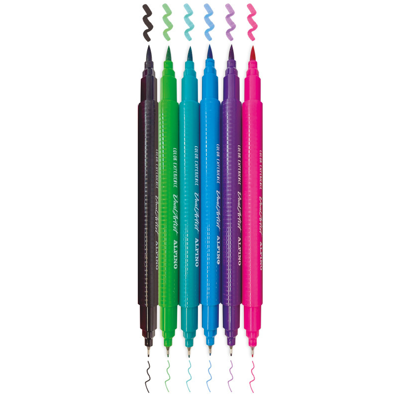 6 dvipusius „Artist“ rašiklius: plonas flomasteris ir teptuko tipo galiukas