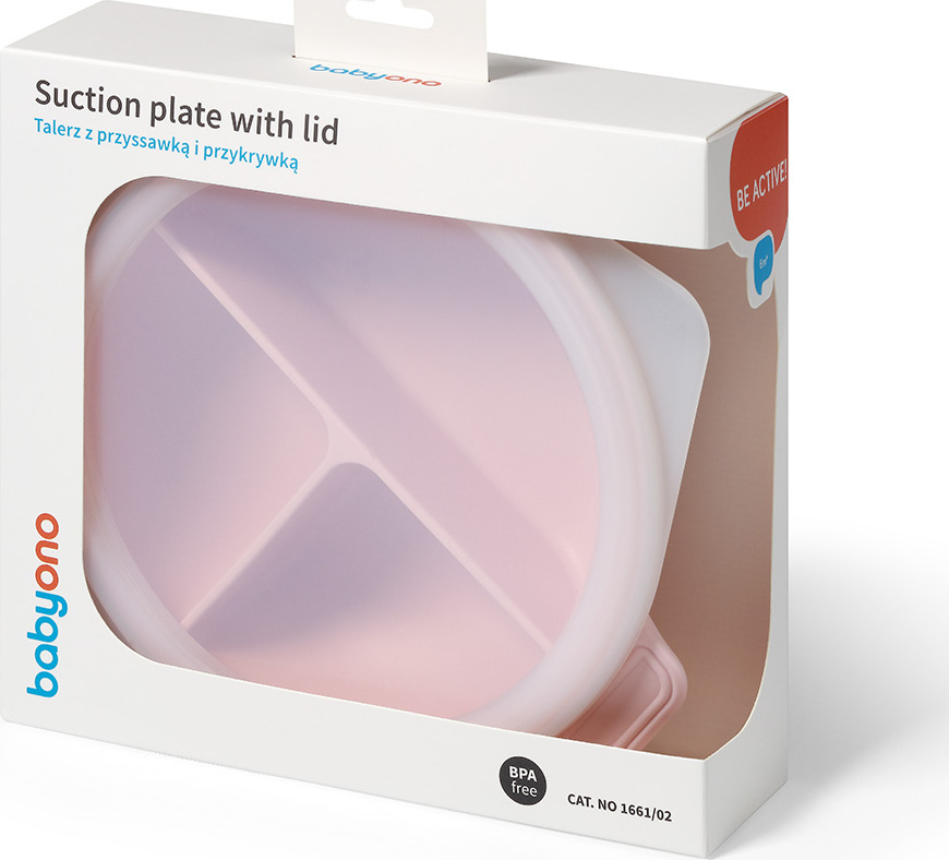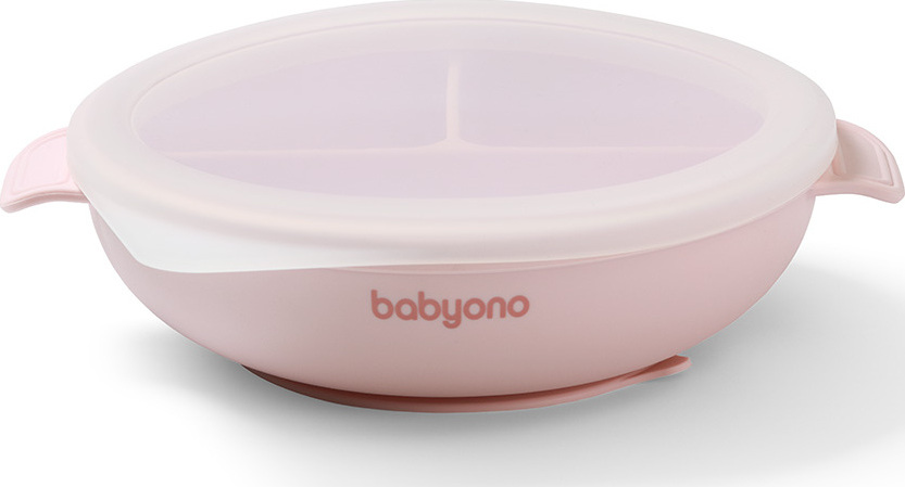 Babyono lėkštutė silikoninė neslystanti su dangteliu ir skyriais rožinė 1661/02