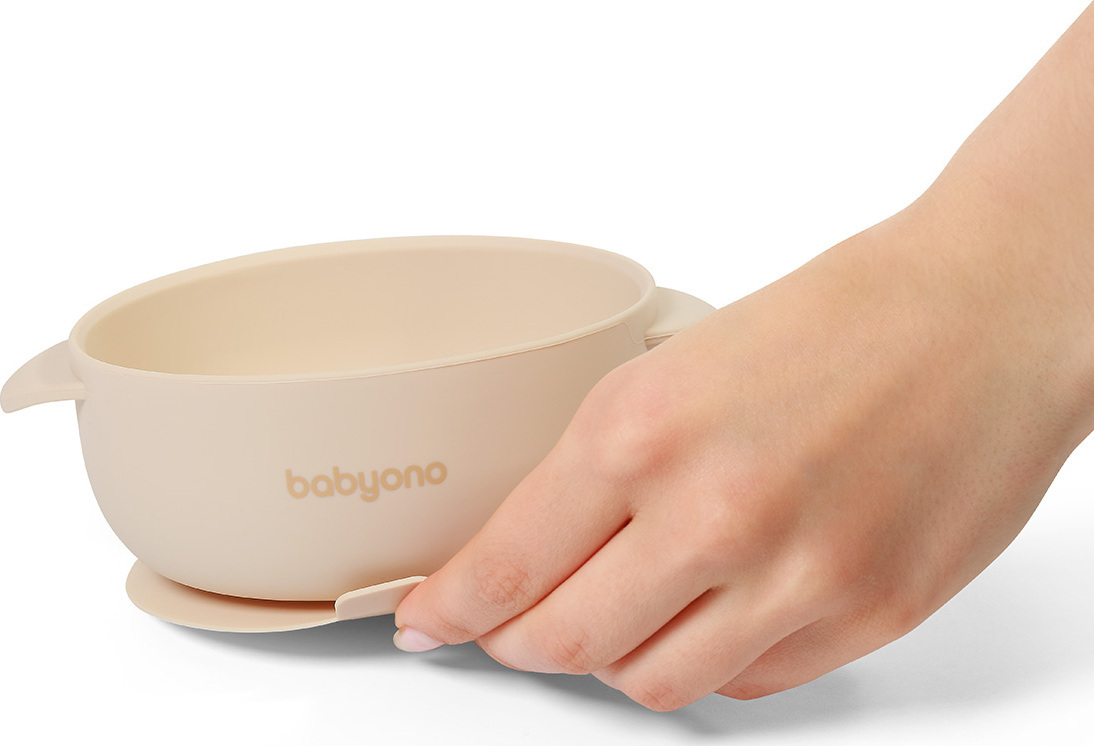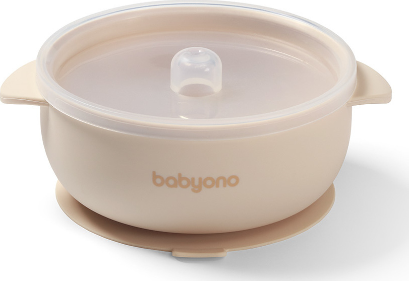 Babyono lėkštutė silikoninė neslystanti su dangteliu kreminė 1662/03