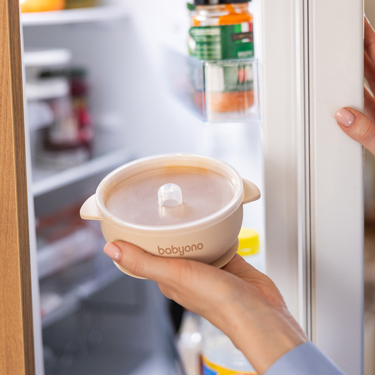 <p>Babyono silikoninis dubenėlis su siurbtuku ir dangteliu bus puikus pagalbininkas pradedant maitinti tirštu maistu bei kai jūsų mažylis mokosi valgyti savarankiškai. Jį galite naudoti sriuboms, makaronams, daržovėms, vaisiams ar jogurtui patiekti.</p><p>Dėka tvirto siurbtuko, dubenėlis išlieka savo vietoje net ir tada, kai smalsus kūdikis bando jį numesti. Suapvalinti kraštai leidžia mažyliui pačiam lengviau semti maistą. Dangtelis padeda išlaikyti patiekalą šviežią ir šiltą, o neslystančios rankenėlės suteikia saugų ir patogų dubenėlio pernešimą.</p><p>Mūsų silikoninis dubenėlis pagamintas iš saugaus, be BPA ir patvaraus silikono. Jis tinkamas naudoti mikrobangų krosnelėje ir indaplovėje.</p><p>SAVYBĖS</p><p>Platesnė mityba<br />