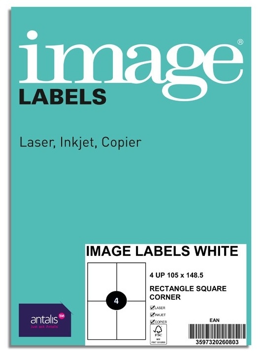 Etiketiniai lipdukai IMAGE 105x148 mm, A4, 4 lipdukai lape, 100 lapų