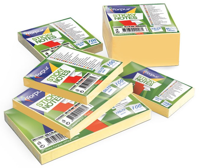 Lipnūs lapeliai FORPUS, 75x75 mm, 400 lapelių, geltoni