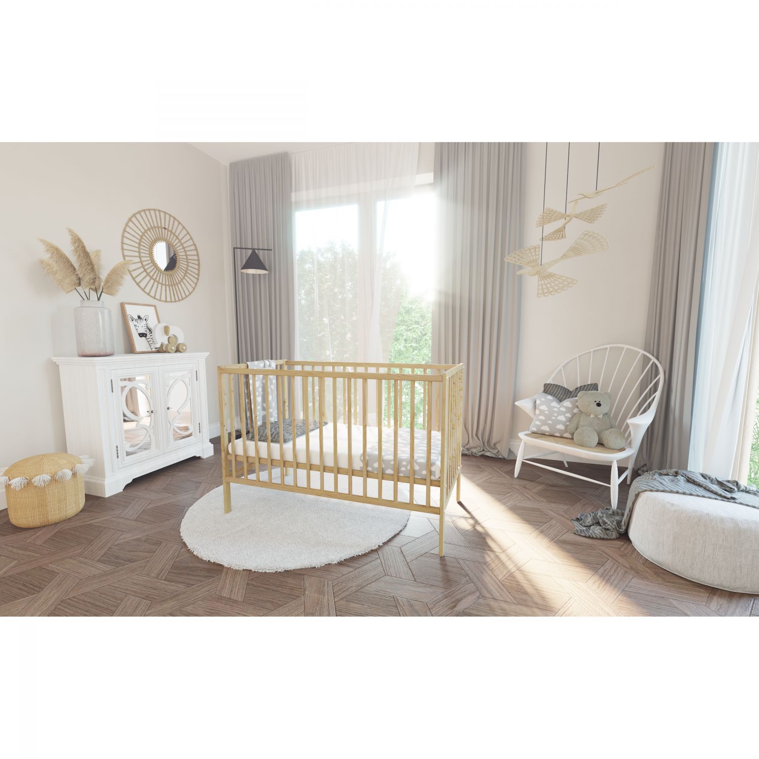 Saugumą užtikrina užapvalinti kiekvieno elemento kraštai.<br />• 3 aukščio reguliavimo lygiai<br />• Išimami 3 pagaliukai.<br />• Saugios medžiagos<br />• Atestuota.<br />- vaiko amžius 0-3 metai<br />- lovytės aukštis: 84 cm<br />- pagaminta Lenkijoje<br />- iš medžio<br />- plokšti pagaliukai, ažūrinė konstrukcija<br />- naudojami sertifikuotos ir saugios medžiagos<br />- trys aukščio reguliavimo lygiai – padėtys keičiamos vaikui augant<br />- trys išimami pagaliukai, kad savarankiškai ropojančiam kūdikiui būtų lengva išlipti iš lovytės<br />- medinis, natūralios spalvos grotelių dugnas neimpregnuotas, siekiant išlaikyti kuo geriausią čiužinio ventiliaciją<br />- varžtų rinkinys ir surinkimo instrukcija<br />- komplekte nėra aklių – per smulkūs elementai, kurie yra pavojingi naujagimiui.<br /> </p>