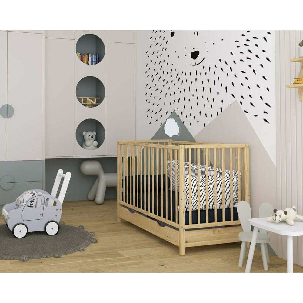 Saugumą užtikrina užapvalinti kiekvieno elemento kraštai.<br />• 3 aukščio reguliavimo lygiai<br />• Funkcionalus stalčius<br />• Išimami 3 pagaliukai.<br />• Saugios medžiagos<br />• Atestuota.<br />- vaiko amžius 0-3 metai<br />- lovytės aukštis: 84 cm<br />- pagaminta Lenkijoje<br />- iš medžio<br />- plokšti pagaliukai, ažūrinė konstrukcija<br />- naudojami sertifikuotos ir saugios medžiagos<br />- funkcionalus stalčius, leidžiantis susidėti būtiniausius daiktus (8 cm gylio)<br />- stalčius ant ratukinių bėgelių, pakabinamas, apsaugantis grindis nuo pažeidimų<br />- stalčius uždengtas plokšte, vizualiniam efektui pagerinti (ištraukus stalčių plokštė lieka lovytėje)<br />- trys aukščio reguliavimo lygiai – padėtys keičiamos vaikui augant<br />- trys išimami pagaliukai, kad savarankiškai ropojančiam kūdikiui būtų lengva išlipti iš lovytės<br />- medinis, natūralios spalvos grotelių dugnas neimpregnuotas, siekiant išlaikyti kuo geriausią čiužinio ventiliaciją<br />- varžtų rinkinys ir surinkimo instrukcija<br />- komplekte nėra aklių – per smulkūs elementai, kurie yra pavojingi naujagimiui.<br /> </p>