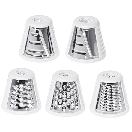 - Coarse grater, Fine grater, Fine Slicer, Thick Slicer, Rough Grinder