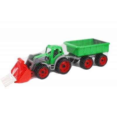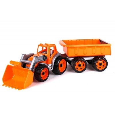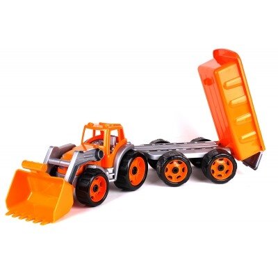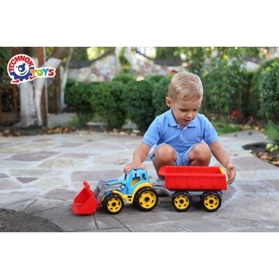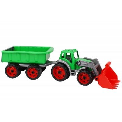 Traktorius su priekaba, skirtas žaisti tiek lauke, tiek namuose.