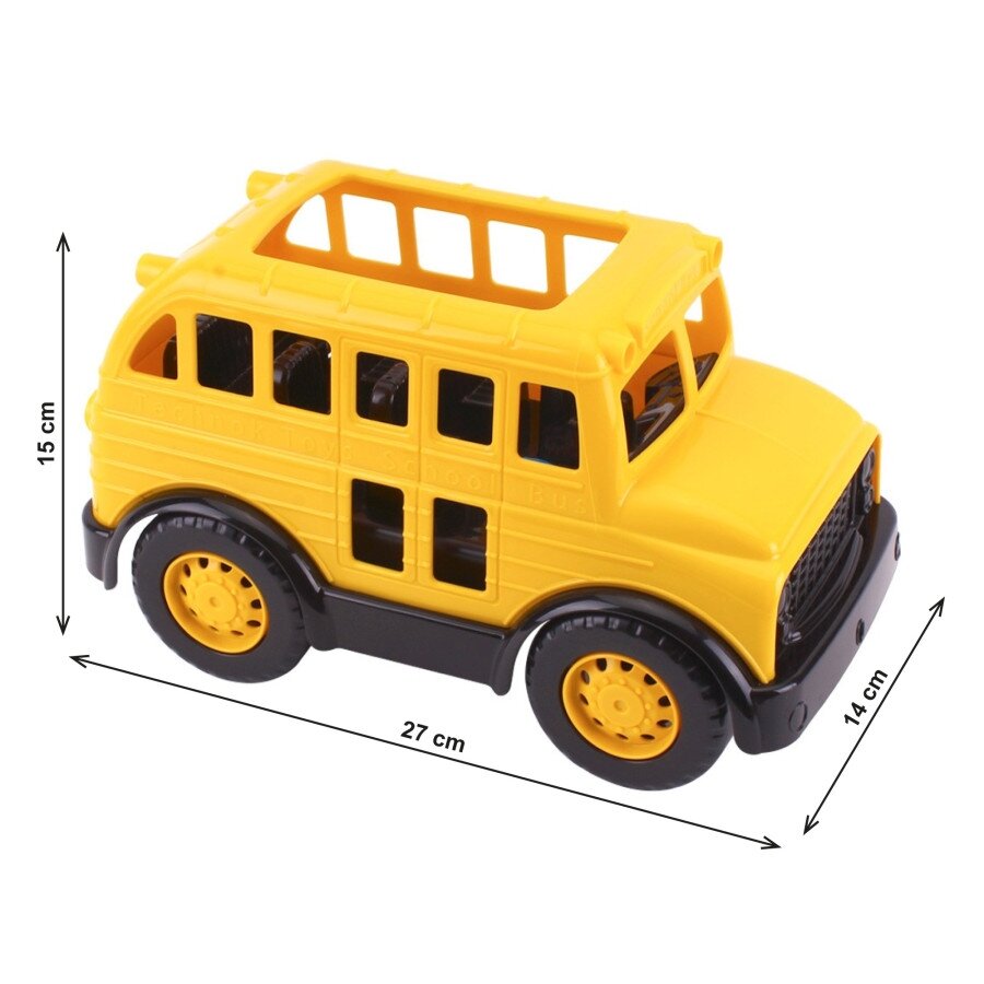 Ryški geltona spalva ir ergonomiškas dizainas patraukia vaikų dėmesį ir skatina ilgesnį, aktyvų žaidimą. Autobuso priekyje esanti skylė virvelei leidžia tempti žaislą, todėl šis traukiamas autobusas vaikams puikiai tinka pasivaikščiojimams ir žaidimų aikštelei.