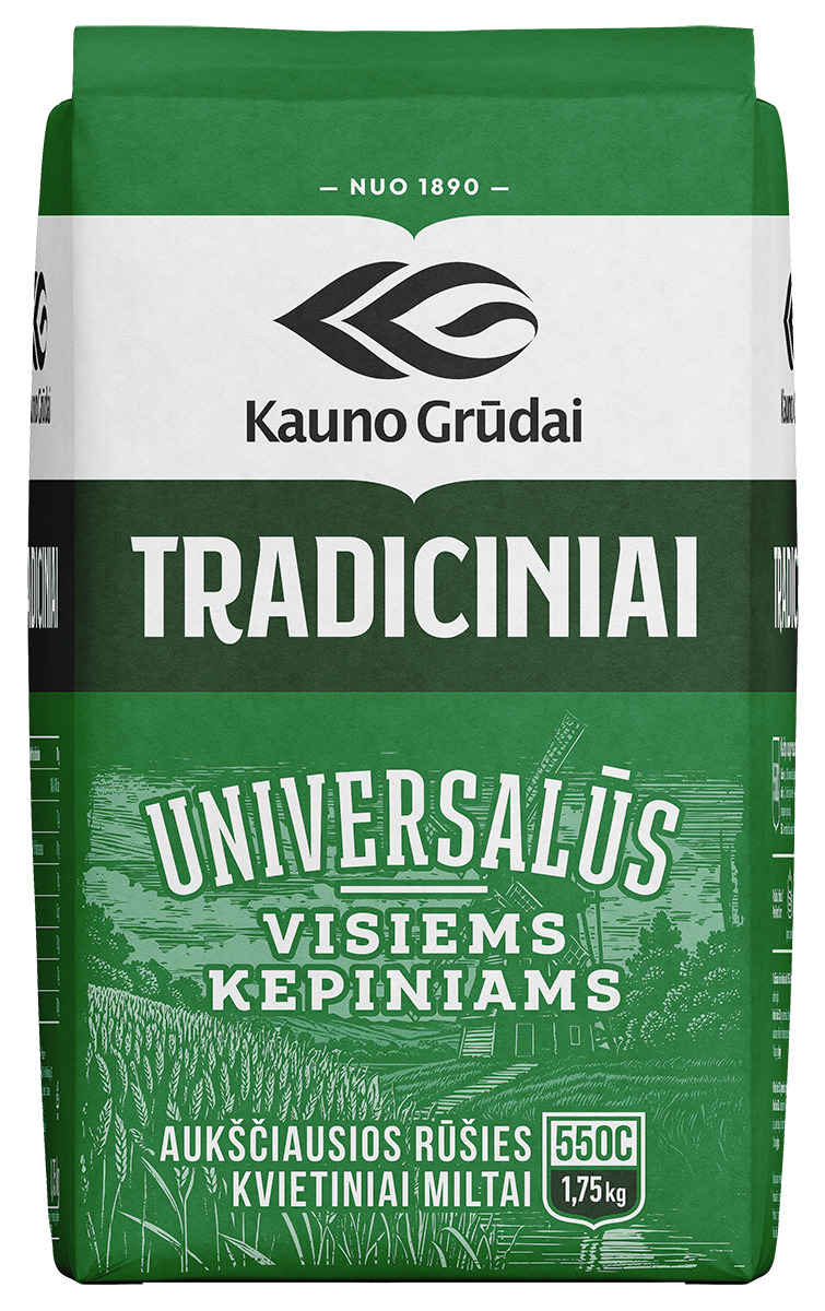 Tradiciniai kvietiniai miltai, KAUNO GRŪDAI 550C, 1,75 kg