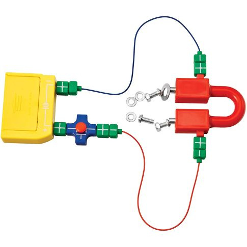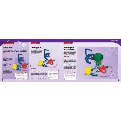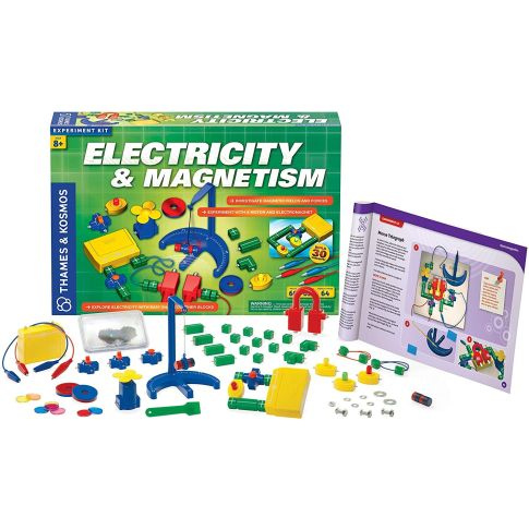 Norėdami sužinoti apie elektrą ir magnetizmą bei tai, kaip šios dvi sritys yra susijusios, atlikite daugiau nei 60 eksperimentų su grandinėmis ir magnetinėmis kontrakcijomis. Aštuonerių metų ir vyresni vaikai galės saugiai ir lengvai eksperimentuoti su elektros srove ir magnetiniais laukais, naudodamiesi spalvotais prisegamais blokeliais ir kitais komponentais, esančiais šiame praktiškame komplekte. Atlikite bandymus, kad pamatytumėte, kurios medžiagos yra magnetinės. Sužinokite apie magnetizmo jėgą ir magnetinius polius. Galiausiai gerai panaudokite viską, ką išmokote, pastatydami garsiakalbį, elektromagnetinės relės jungiklį ir Morzės kodo telegrafo raktą. Komponentai yra specialiai sukurti tam, kad mokymasis būtų įdomus ir prieinamas kiekvienam vaikui.