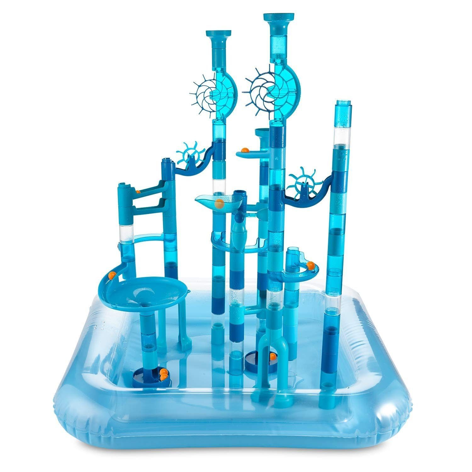 Nuo vertikalių lašų ir sūkurių iki centrifugų ir versmių, vaikai gali sušlapti savo kojas žaisdami ir tuo pačiu mokydamiesi pagrindinių fizikos principų. Plaukiojantys rutuliukai stebuklingai išsilaiko vandens paviršiuje, o vandeniui atsparus kilimėlis leidžia žaidimo vietą susitvarkyti itin greitai ir paprastai. Iš inžinerinių žaislų ir statymo rinkinių, žaidimą "Vandens labirintas" kitiems žaidimams pralenkti iš tiesų sudėtinga.Šis įtraukiantis žaidimas moko logikos, kūrybiško žaidimo, fizikos pagrindų, pagrindinių motorinių ir problemų sprendimo įgūdžių bei suteikia galimybę lavinti STEM gebėjimus žaidžiant. "Vandens labirintas" leis išsiųsti kamuoliukus į besisukančią, vingiuojančią, šokinėjančią kelionę, kurios dar neteko matyti anksčiau. Įvairūs latakai, suktukai ir kitos detalės leidžia žaisti valandų valandas kuriant tikrą inžinerinį stebuklą.