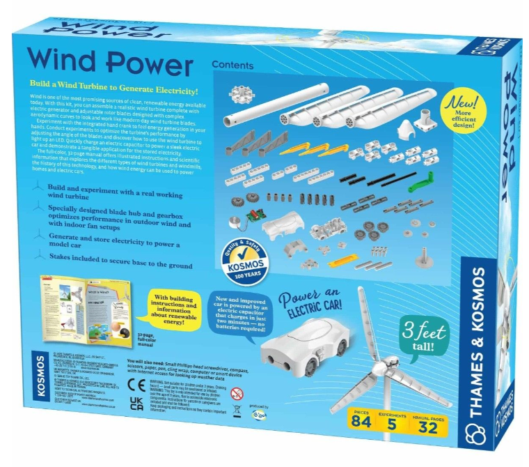 Vėjas – vienas perspektyviausių švarios, atsinaujinančios energijos šaltinių. Su šiuo „Vėjo jėgainės“ rinkiniu Jūs galite ne tik pastatyti modelį, bet ir surinkti tikrovišką, veikiančią vėjo turbiną su elektriniu generatoriumi ir reguliuojamomis rotoriaus mentėmis. Šios mentės yra sukurtos su sudėtingomis aerodinaminėmis kreivėmis, kad atrodytų ir veiktų tiksliai taip, kaip modernios vėjo jėgainės.