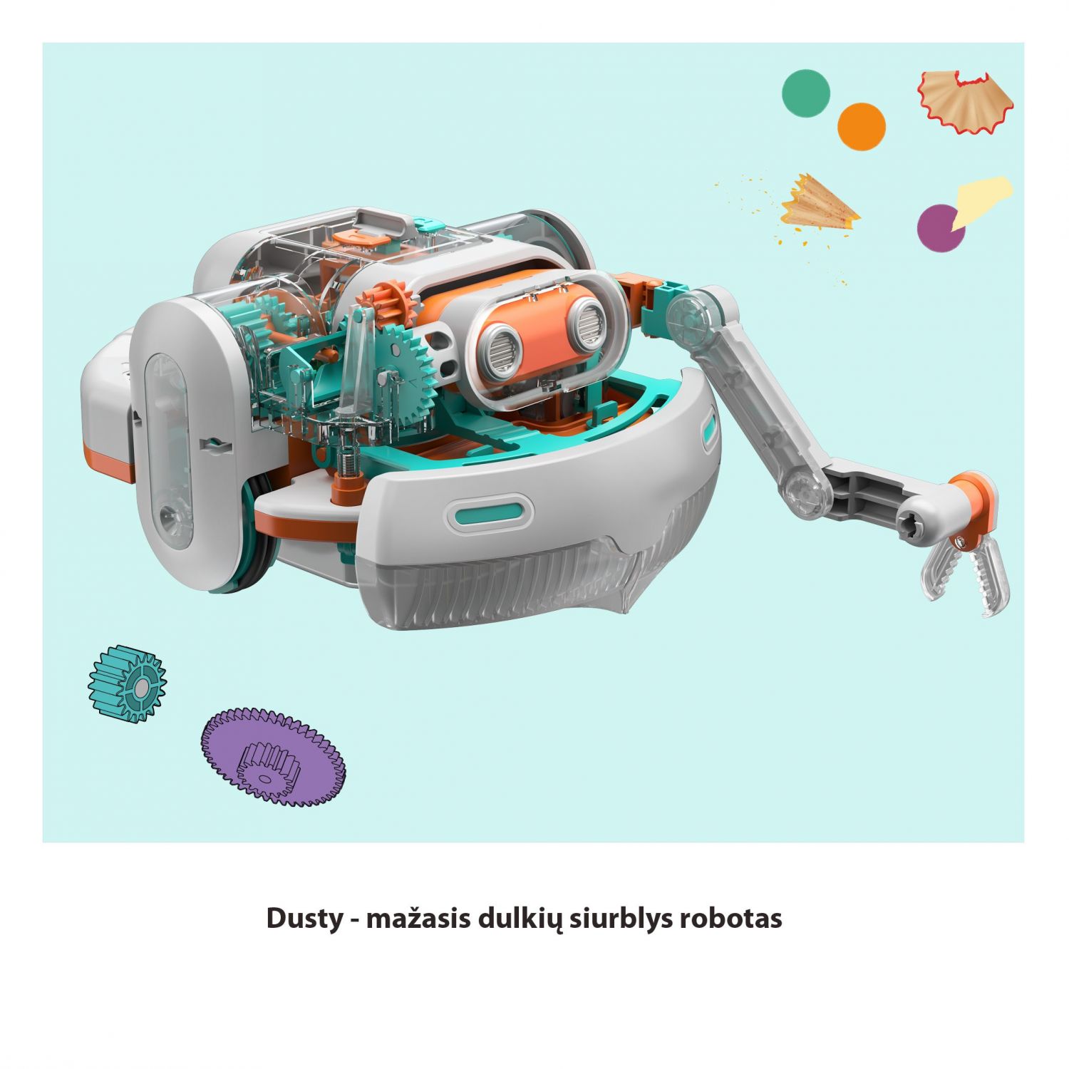 Jis vairuoja, siurbia ir beprotiškai ieško dulkių ir trupinių: Dusty, mažasis „pasidaryk pats“ dulkių siurblys robotas, ne tik sukuria puikią atmosferą vaikų kambaryje, bet ir padeda palaikyti tvarką ant rašomojo stalo.