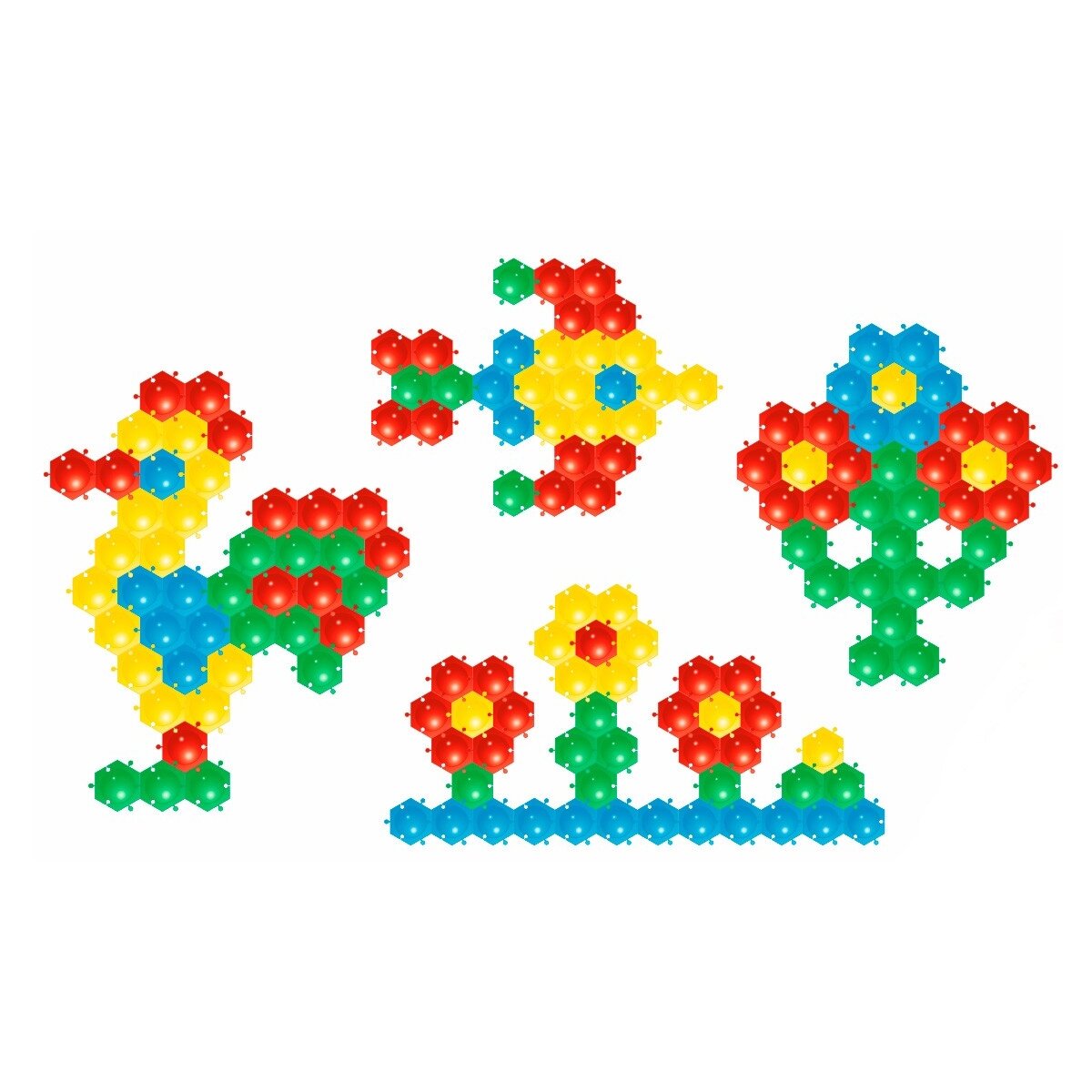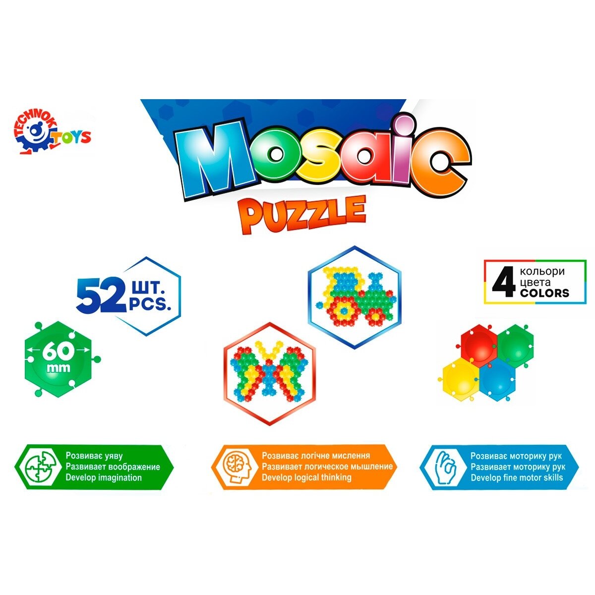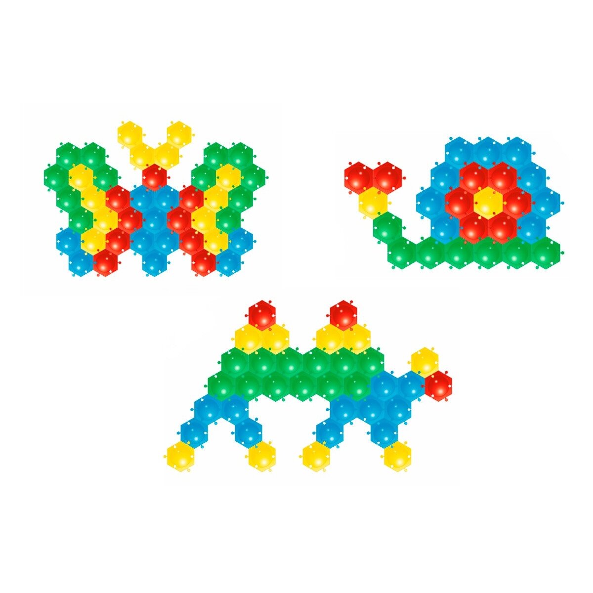 Mozaikinė dėlionė susideda iš 52 spalvotų šešiakampių, iš kurių kūdikis gali pasidaryti bet kokias formas ir raštus.
