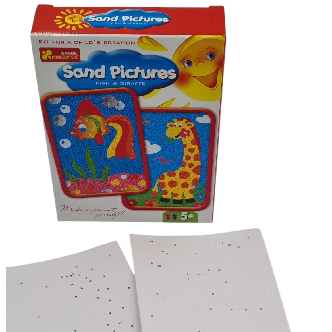 Kūrybinis rinkinis Piešimas smėliu Žuvytė ir Žirafa RANOK, 2 paveiksliukai