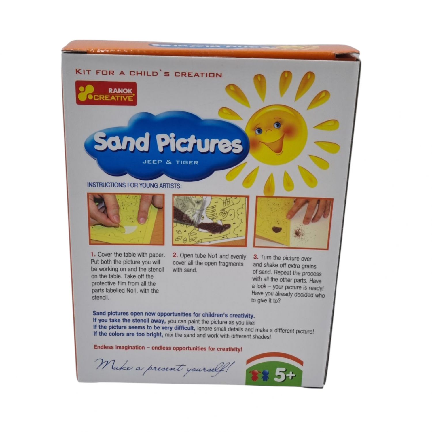 Kartu su tėveliais ar seneliais vaikas gali padaryti tikrą smėlio paveikslą. Tai labai lengva, bet žavinga! Ryškiaspalvis smėlis ir blizgučiai sukurs pasakišką atmosferą jums ir jūsų vaikui, o jūs puikiai praleisite laiką kartu!