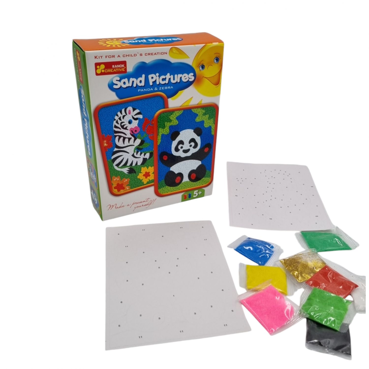 Kūrybinis rinkinis Piešimas smėliu Panda ir Zebras RANOK, 2 paveiksliukai
