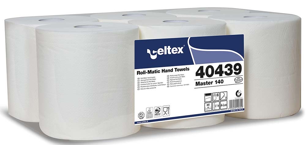 Popieriniai rankšluosčiai automatiniams dozatoriams, CELTEX Master 140, 40130, 140 m, 1 rit.