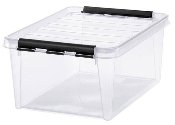 Daiktadėžė su dangčiu. Prekės ilgis: 40 cm. Plotis: 30 cm. Aukštis: 18 cm. Medžiaga: plastikas. Skaidrios spalvos.
